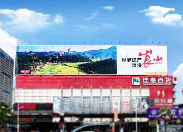 廣告位位于邵陽市中心繁華的人民廣場佳惠超市樓上正面,面臨金百匯商業(yè)街中心廣場交通要道口,人車流量大,是五一路(手機終端商業(yè)中心)、東風路、東大路、昭陵路交匯處。人民廣場是邵陽文化、商業(yè)、經(jīng)濟中心。廣告位置視覺寬廣,在邵陽市東大門有不可抗拒的視覺沖擊力。
